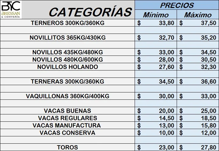 El pasado jueves fue realizado, en nuestras instalaciones de la ciudad de Río Cuarto, el remate semanal de hacienda gorda del cual a continuación dejamos el detalle de los valores. Recordamos el nuevo horario de atención en nuestra oficina de Río Cuarto, que a partir del próximo lunes 10 pasará a ser de corrido de […]